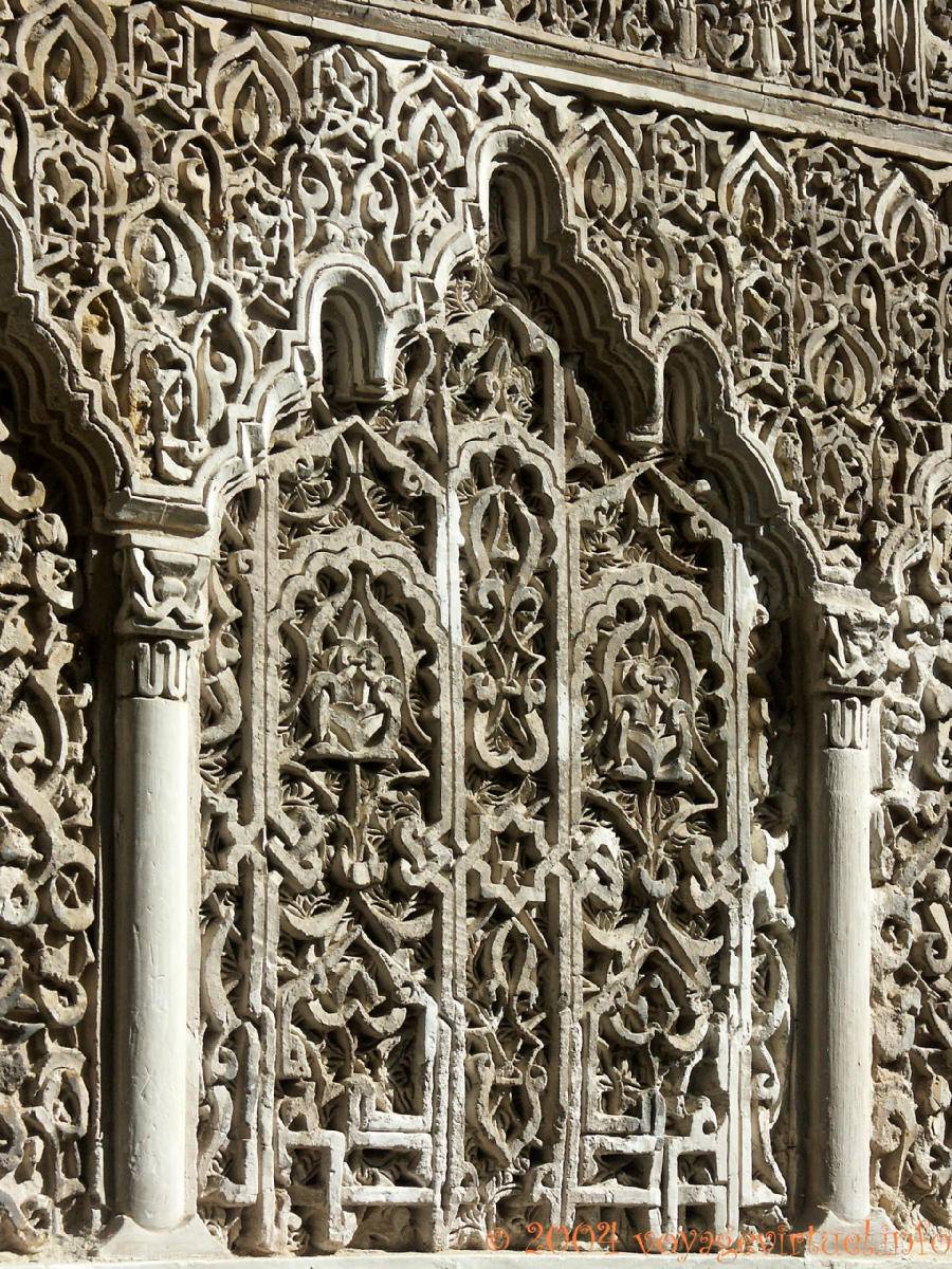 - Preciosa imagen con claroscuros del intradós del arco que da acceso al Patio del Yeso almohade desde la Sala de la Justicia, del rey Alfonso XI. Arabesco (Adornos geométricos y fitomórficos) y epigrafía árabe: "Dios es el consuelo" (Pedro - 83.58.89.83)