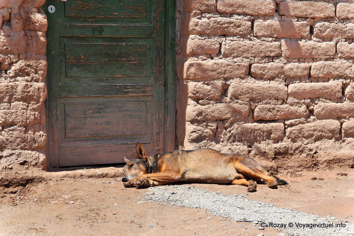 '; Perro el dormir delante de una puerta, Valles Calchaquíes, Ruta 40 - Argentina