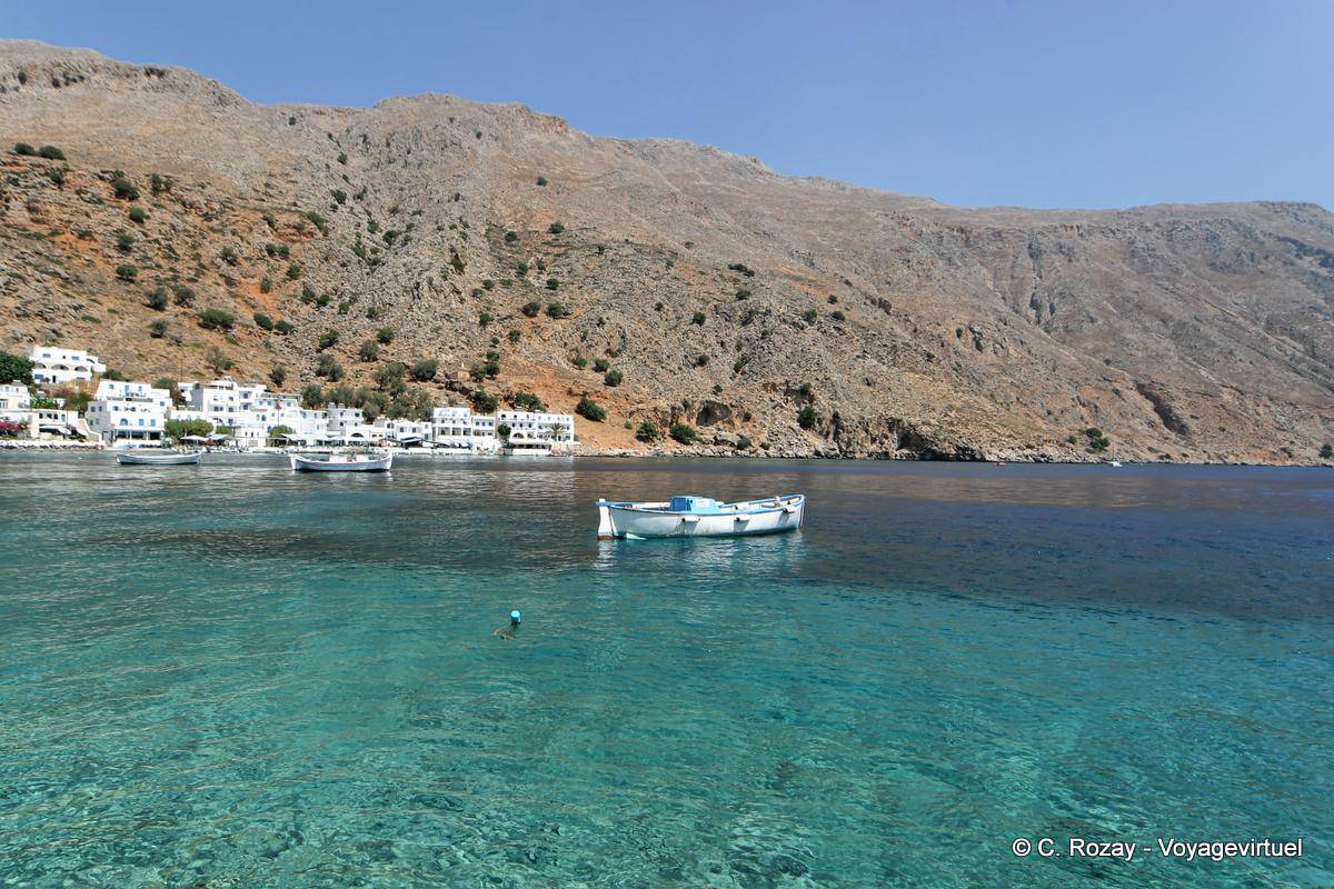 - Loutro, un endroit de paradis où je reviendrai et que cette photo, par ailleurs, illustre parfaitement. Quelle paix d'y faire du canoé le soir dans cette baie magnifique. (1415gene)