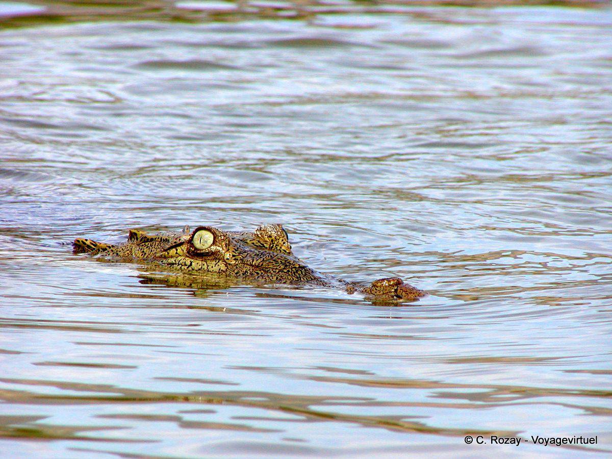 - Ce crocodile, dit d'Amérique, est une créature préhistorique, à distinguer de son cousin, l'alligator américain, par son museau plus long et plus mince, sa couleur plus claire, et deux longues dents sur la mèchoire inférieure qui sont évidentes quand sa bouche est fermée. (Suzy)