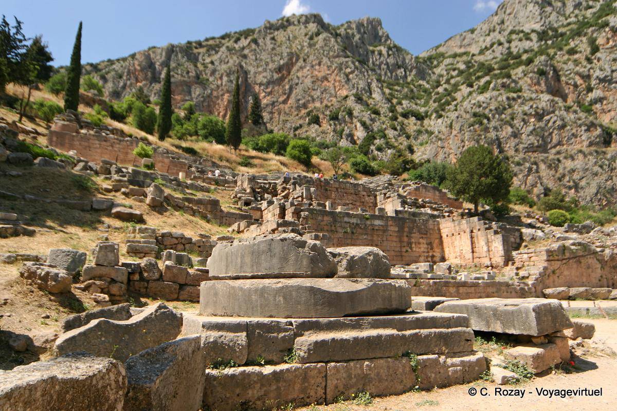 - Le sanctuaire panhellénique de Delphes où parlait l'oracle d'Apollon abritait l'Omphalos, nombril du monde. (Igor)