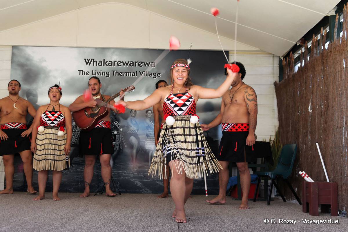 Poi y Twine Ball, Whakarewarewa maorí espectáculo, Rotorua - Nueva-Zelanda