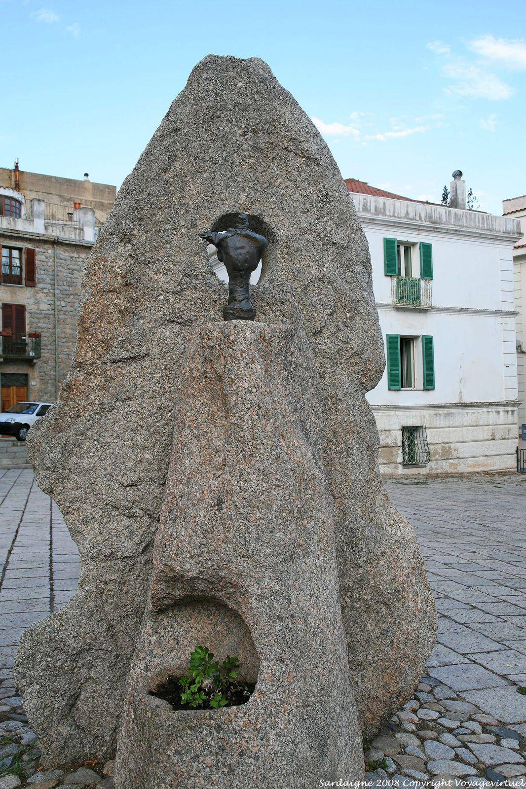 Bloque de granito para albergar una estatua de bronce, Nuoro, Sebastiano Satta piazza, escultura Constantino Nivola - Cerdena